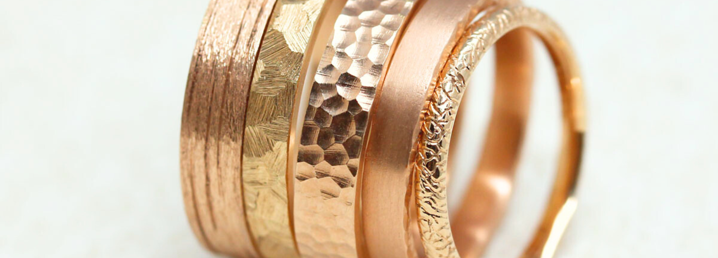 Travaillé à la main, notre or est brossé, rainuré, martelé, sculpté ou ciselé, puisant son inspiration dans la beauté de la nature.