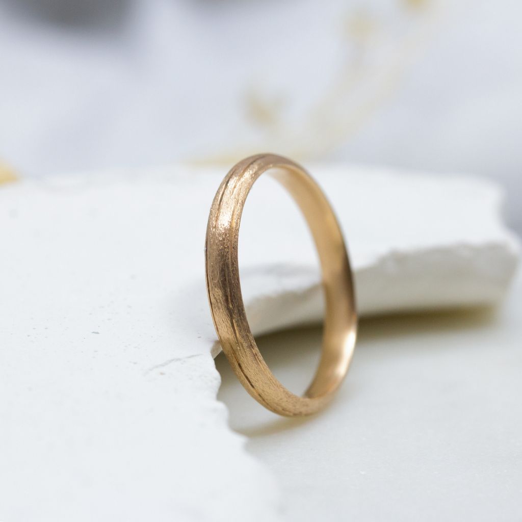 Notre alliance Casildée - bombée 3 mm est réalisée dans notre atelier parisien en or Fairmined 750/1000 18 carats.