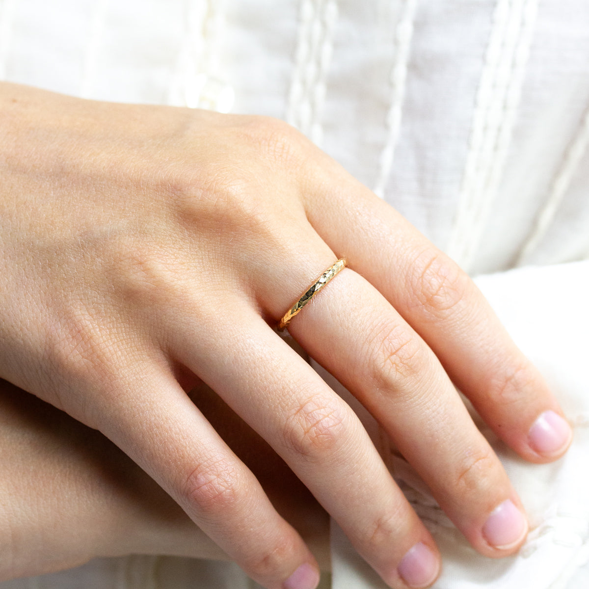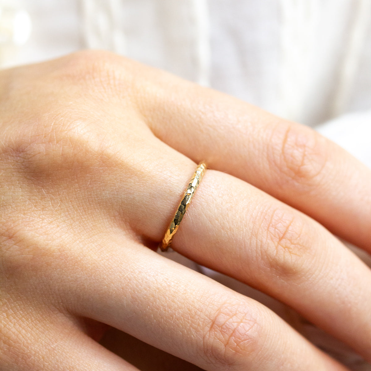 Notre texture Sarita est l'une de nos premières créations chez Paulette à Bicyclette. Son anneau fin de 1,8 mm est travaillé en jonc pour un rendu bombé qui capture encore lus la lumière.