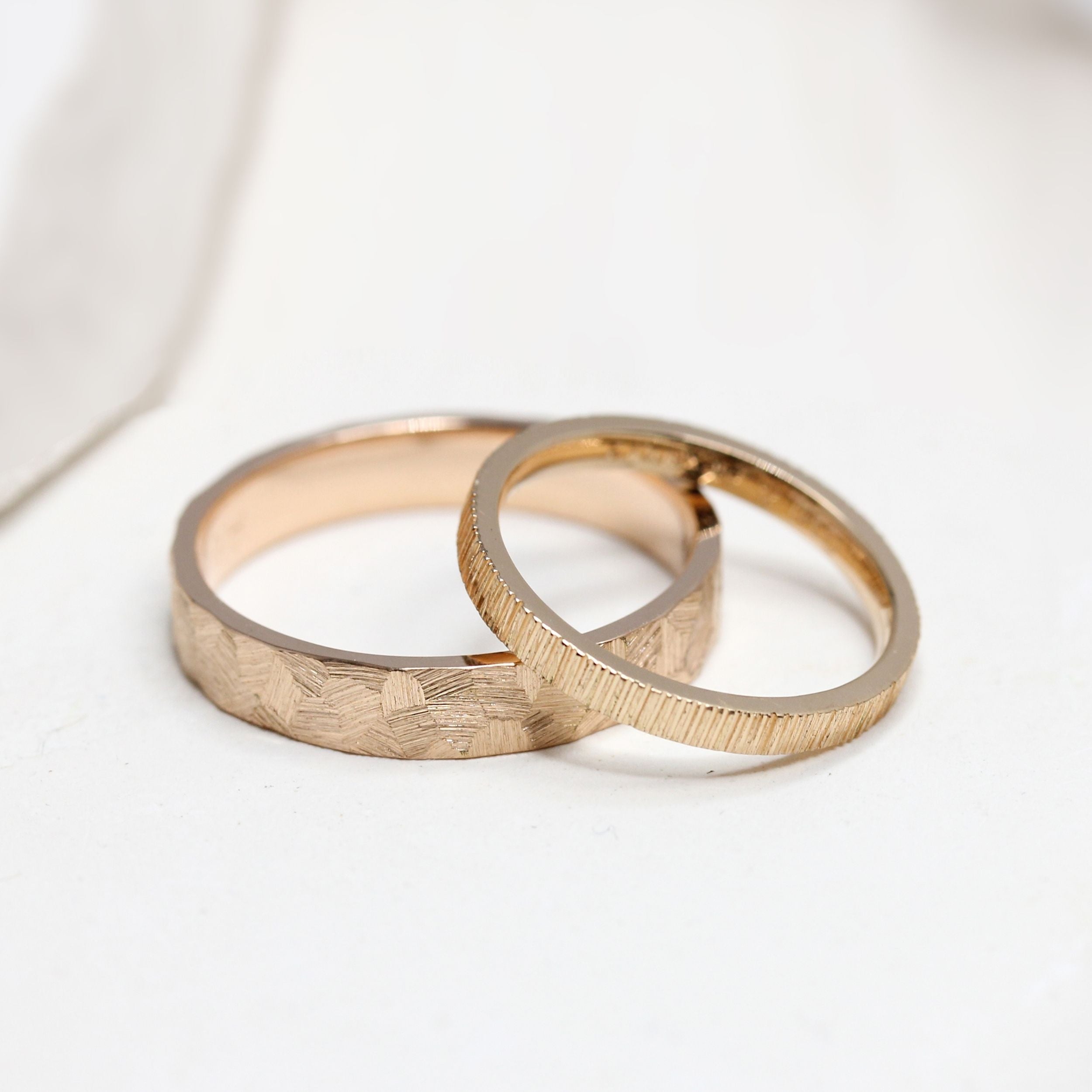 Nos alliances originales sont reconnaissables à leur or texturé : or brossé ou mat, or martelé, rainuré, strié ou comme ciselé.