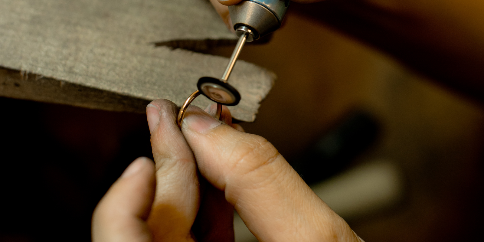 Nos alliances et anneaux en or martelé se distinguent par leur inspiration venue du règne minéral. Nos joailliers façonnent chaque facette à la main, l’une après l’autre, pour un résultat durable, artisanal et unique.