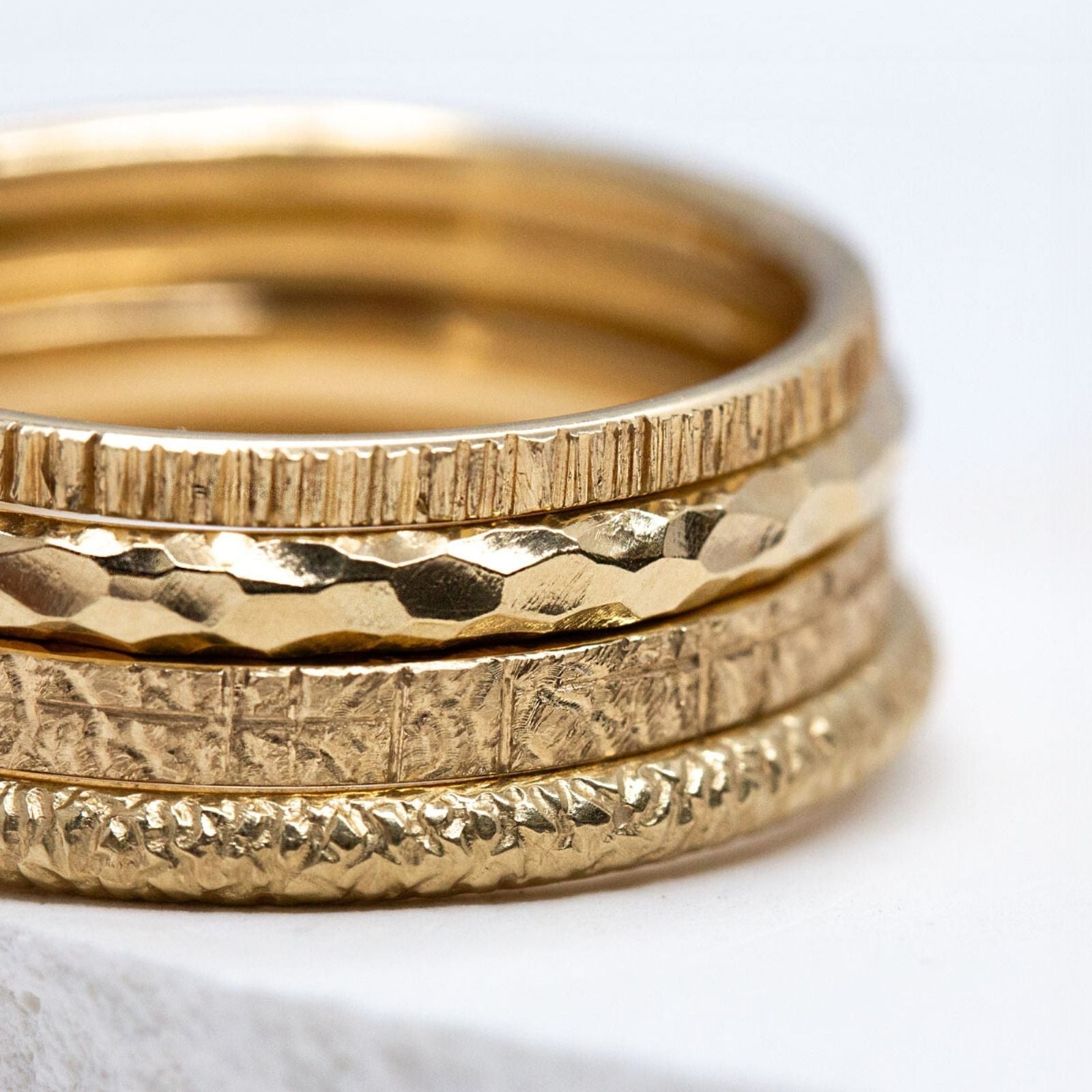 Cette collection se concentre sur des textures essentielles et intemporelles : des lignes sobres et épurées pour qui recherche des bijoux traditionnels, discrets et élégants. Travaillées à la main, elles demandent un geste minutieux et une finesse constante pour un résultat harmonieux.