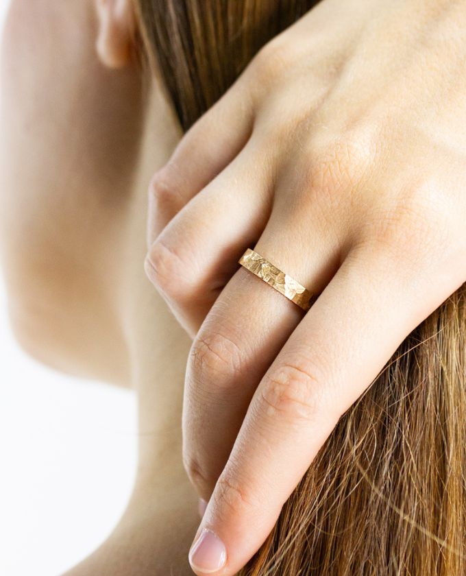 Le cercle d’or Fairmined est travaillé ici avec la texture Sarita et ses facettes martelées